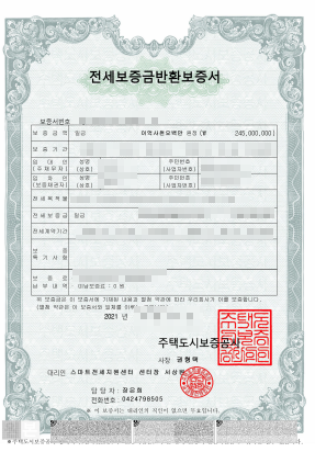 중개사의 말대로 21년 10월 임대인은 보증보험 접수증, 보증보험 보증서를 보내줬습니다.