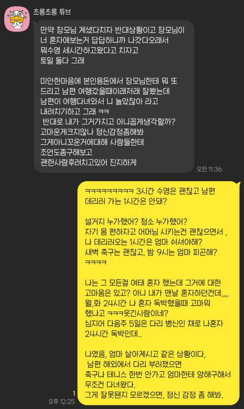 그러니까 4일 내내 어머님 도움 받으며 본인 몸 편하게 지냈으면서, 그건 안 미안하고,