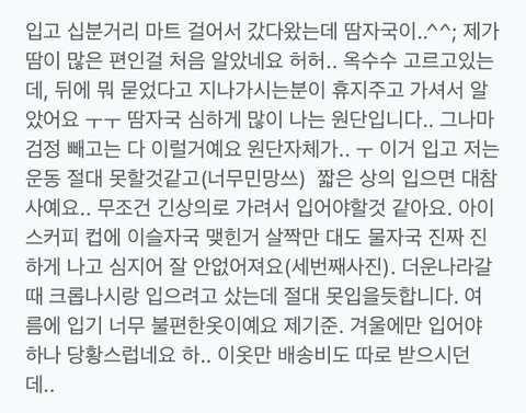 1. 개인적으로 한여름에 입기에는 불편한 원단이라 판단되었음.