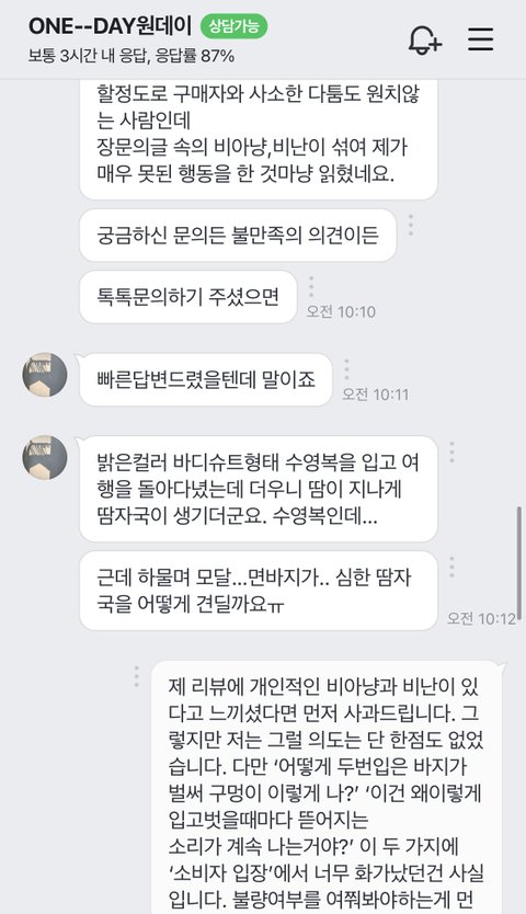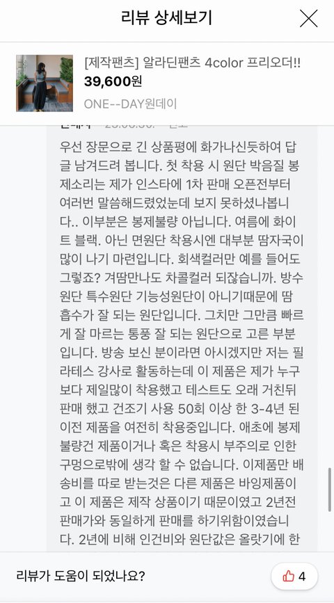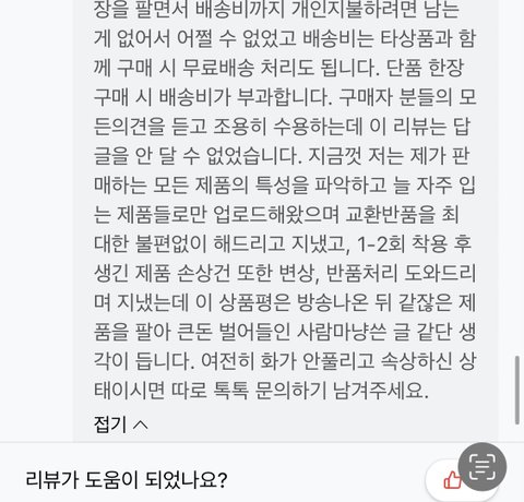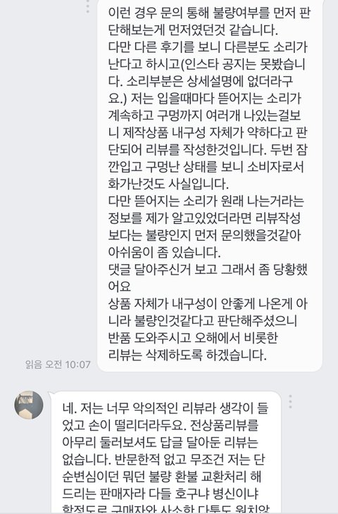 3. 사실 아직까지도 제 리뷰가 이렇게 판매자의 공분을 살 일인지는 잘 모르겠습니다. 그냥 판매자가 기분이 너무 나쁘다 하시고 막 손도 덜덜 떨리시다고 하니 리뷰 삭제하긴 했는데 후회됩니다.