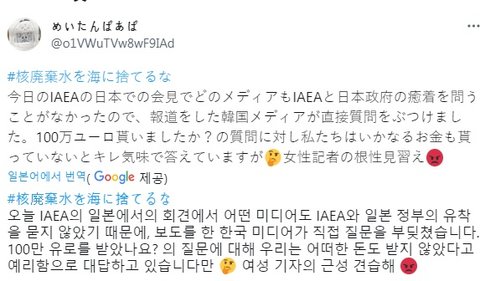 한국 기자가 IAEA 회장한테 "일본한테 돈 얼마 받았냐, 100만유로 받았냐" 대놓고 물어봄ㄷㄷ