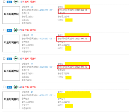 2. 6/19일 피프티 멤버 대리인 4인이 한글명 ‘피프티 피프티’와 ‘멤버 4명의 활동명’을 각각 상표권 출원 신청함