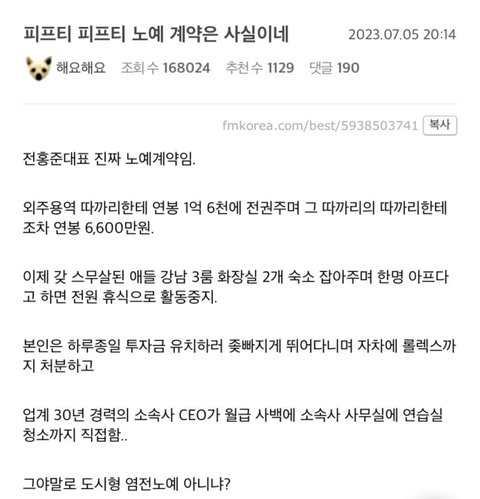 이건 또 무슨 언플이야 이러고 들어왔다가 현웃 ㅋ 대표가 노예인 노예계약 아.....