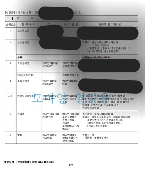 사진상 등기처럼 되신집의 임차인인을 찾는것입니다
