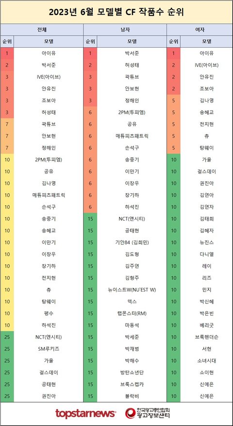 cf 작품 순위에 아이유, 박서준, 아이브, 안유진 ,, 오와
