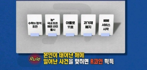 멤버 + 게스트가 태어난 해의 역사적 사건을 고르는 게임