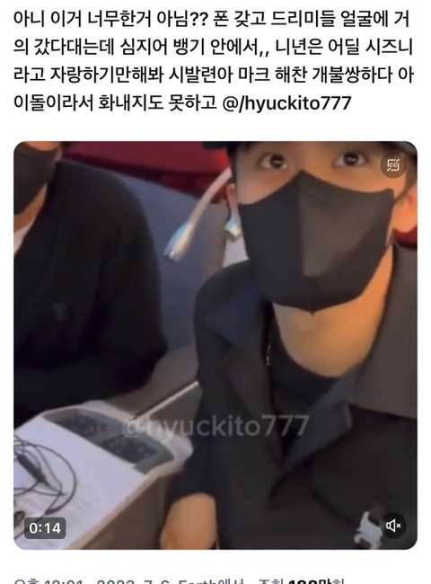 마크가 동영상 찍고 있는 거냐고 물어보고 그렇다 하니까 이름 부르면서 인사해주고 방향 틀어서 해찬 비추니까 해찬은 피함 둘 다 ㅈㄴ빡쳤을 듯