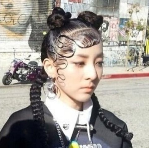 흑발+노랑색 깔맞춤+특이한 패턴