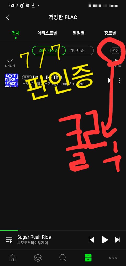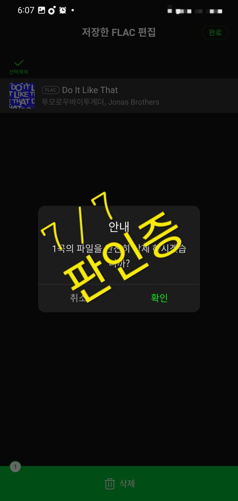 다운로드하고 반드시 삭제하기 내서랍-다운로드한-저장한콘텐츠-곡 또는 FLAC 오른쪽 편집클릭해서 삭제
