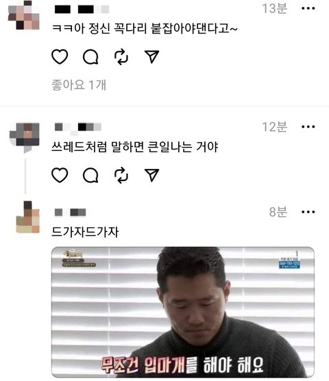 기능만 트위터 비슷할 뿐이지 작은 인스타그램 아님? 인스타 연동이라며? 뭔 시1발 네이트판이라도 하는 것처럼 굴어ㅋㅋ; 진짜로 판녀들이 스레드 넘어가서 외모정병 글 쓰고 아이돌 정병들이 아이돌 억까글 도배하고 댓글로 싸우는 거 보면 놀라서 스레드 지우고 엉엉 울 듯