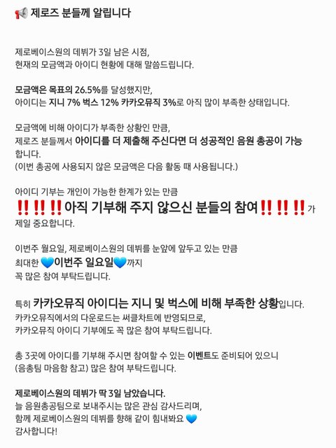 모금이랑 헬퍼도 부족한데 아이디가 정말 많이많이 부족함ㅠㅠ 컴백 당일만이라도 헬퍼들 총공하려면 아이디 충분히 필요해..ㅠ.. 기부 스밍 다운 인증까지 하면 음총팀에서 선물도 줌!!