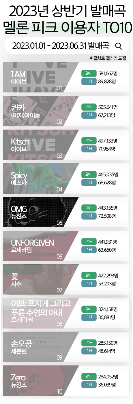 2023년 상반기 발매곡 멜론 피크 이용자수