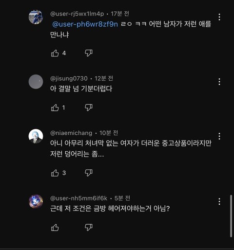 나도 이거 오늘 댓글창보고 진짜 없던 혐오도 생겼음.. 질낮은댓글에 추천수 개많은거보고 아 진용진 시청자 대부분 남초구나 딱 알겠더라 ㅋㅋㅋ