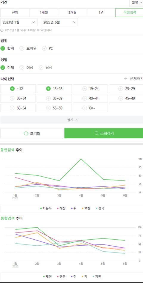 2023년 상반기 10대(12-18세)들이 가장 많이 검색한 남자아이돌 멤버 TOP10