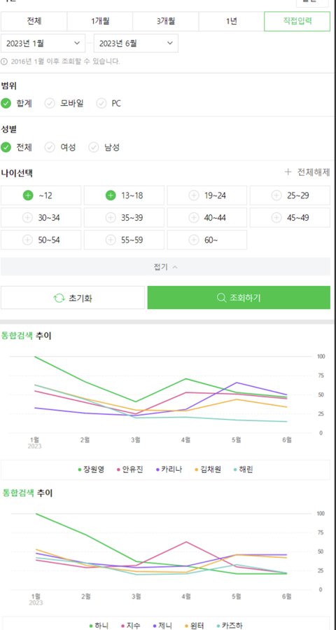 2023년 상반기 10대(12-18세)들이 가장 많이 검색한 여자아이돌 멤버 TOP10