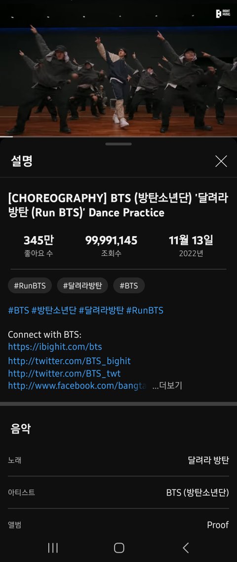 달려라방탄 조금 있으면 1억뷰 !!