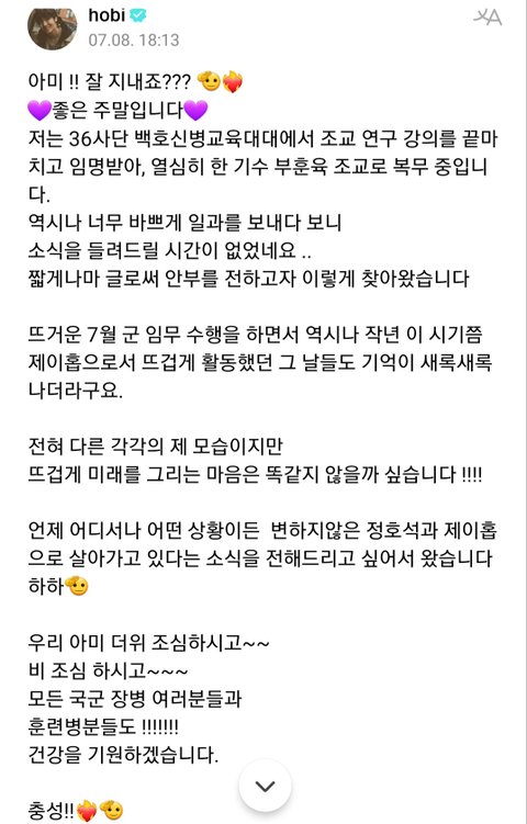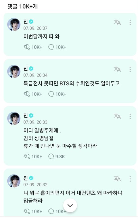 제이홉이 또 다정다람쥐답게 방탄시에 맞춰 글을 남겨줬는데 거기에 진이 댓글 ㅋㅋㅋㅋㅋ