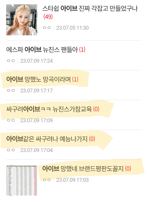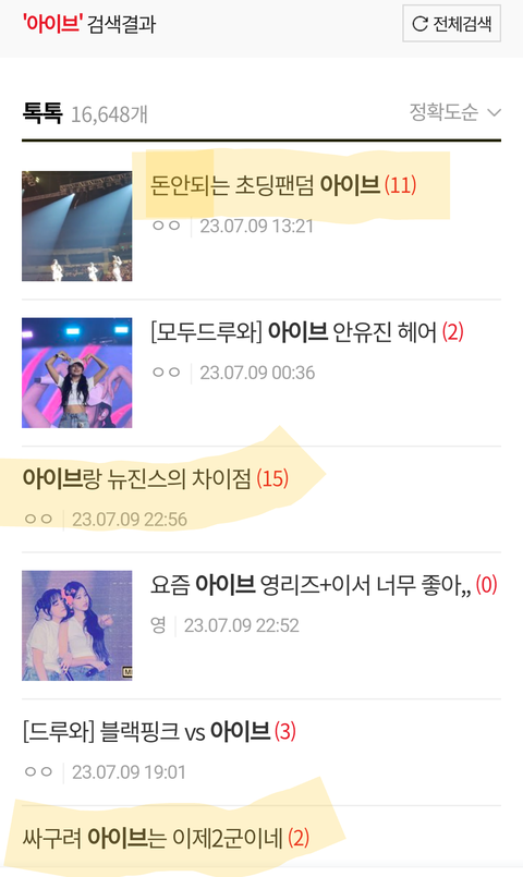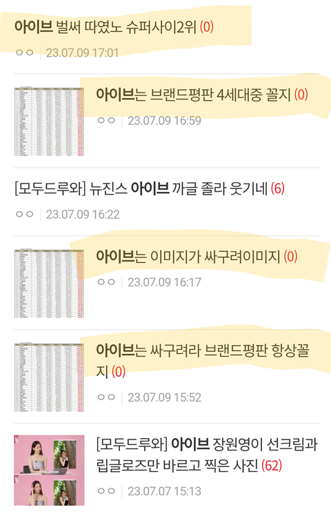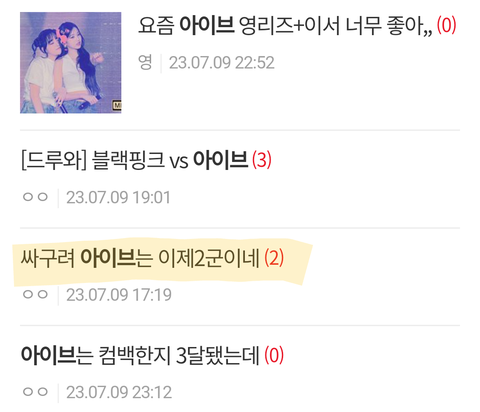 아이브 빠는글보다 까는글이 압도적으로 많음
