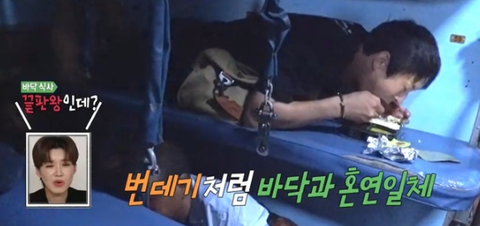 기안84는 협소한 자리 탓에 엎드려서 도시락을 먹었고,