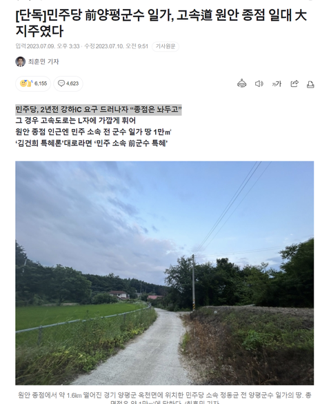 그랬더니 노선 변경 요구 당사자였던 민주당이 갑자기 ‘김건희 특혜론’을 주장하며 대안 반대에 나섰다. 자신들이 요구했던 강하IC가 ‘종점을 바꾸지 않고도 가능하다’는 주장이었다.