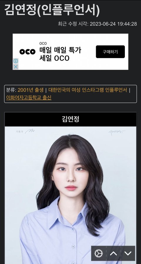 연세대 김연정 나무위키 문서 (본인이 등록한 걸로 추정)