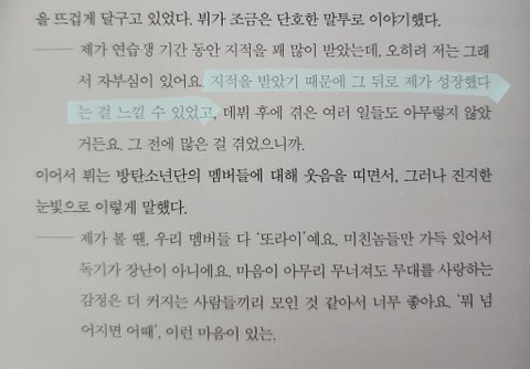 지적을 받고 더 성장함 전혀 꼬아듣지 않음 다른 인터뷰들도 보면 멤버들 칭찬하면서 자기연민 따위는 없음 다른 사람 진심으로 칭찬하고 높이는거 ㄹㅇ상남자에 기존세임 이렇게 자존감 높은 친구 있으면 긍정기운 받아서 나도 같이 성장할 것 같음 이런 성격 닮고싶고 친구하고 싶어