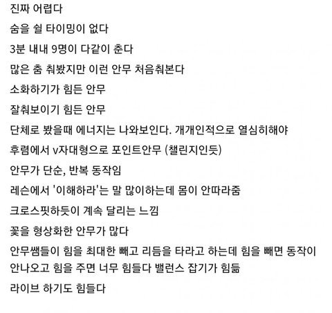 아니 격하고 예쁜 안무면 모르겠는데 지금 안무는 거의 2배속 댄스 수준으로 빠르고 정신없음