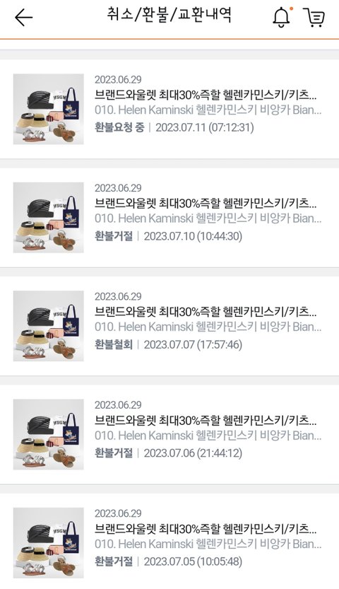 헬렌카민스키모자의 가품의심으로 반품요청 진행중인 내용입니다