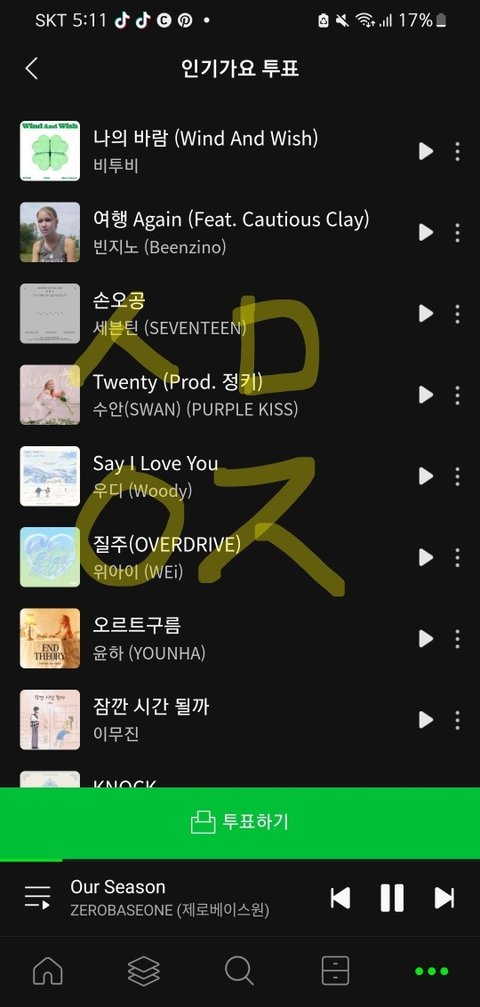 3곡 투표하라는데