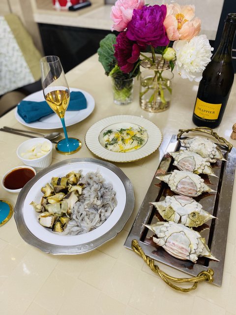 와인과 함께하는 소라찜, 꽃게찜, 세꼬시회, 참외 샐러드