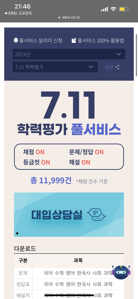얘들아 ebs로 빨리 채점해봐 선착1명