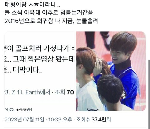 최근인지 언제인지는 모르겠어 단서는 ㅈㅎ님 뽀글머리 정도? 태형이 진짜 친화력 대박인건 같음 ㅈㅅㅇ님은 알고 있었는데 ㅈㅎ까지 목격담 뜨니까 신기해ㅎㅎ