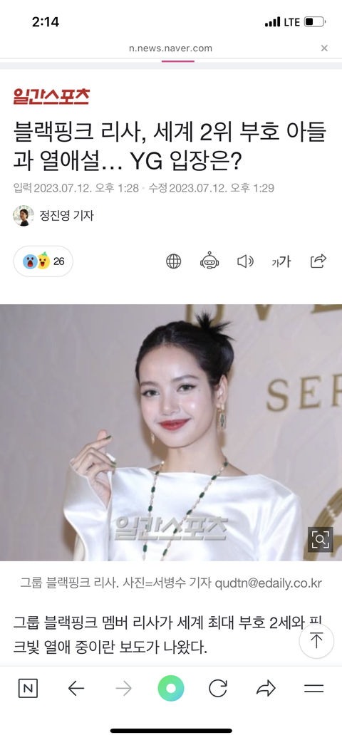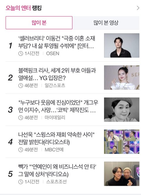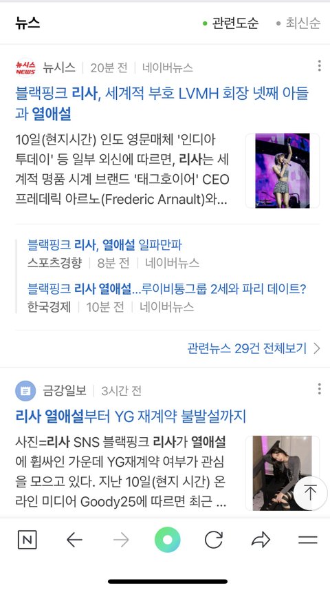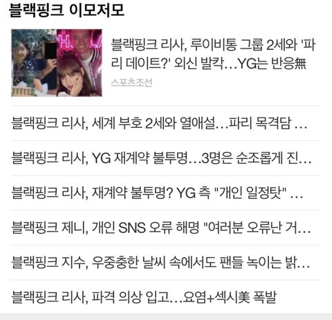 연예뉴스면 리사 재계약&열애설 기사로 도배