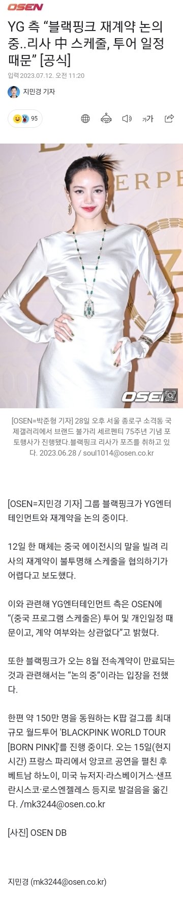 블핑 재계약관련 가장 정확한 기사