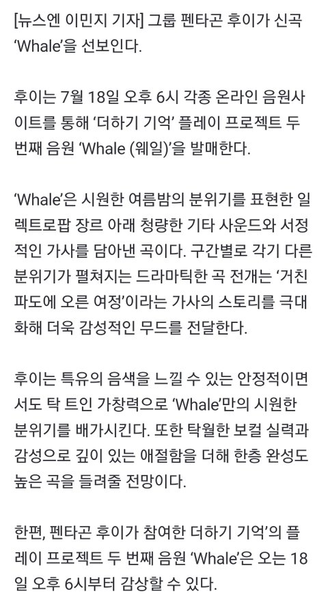 발매일은 7월 18일이고 노래제목은 Whale! 제목부터 넘나 청량한 것!