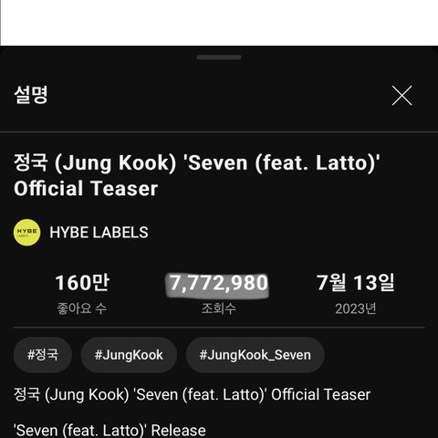 케이팝 솔로가수로는 지금 2위고 현재 1위기록이 1130만뷰야. 뮤비랑 같이 ㅁ스밍돌려도 좋을거같아
