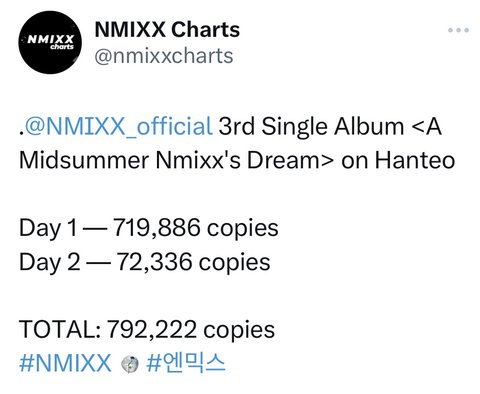 엔믹스 2일차 음판 79만장 (현재는 90만장)