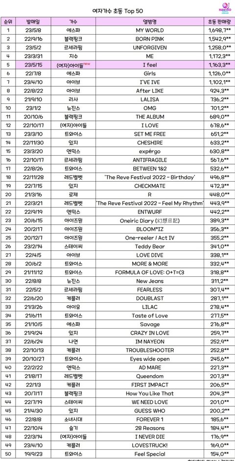음판 70만 이상 판매한 여돌들은 보통 타이틀곡 뮤비 좋아요 수가 100만 넘는 그룹이 많음