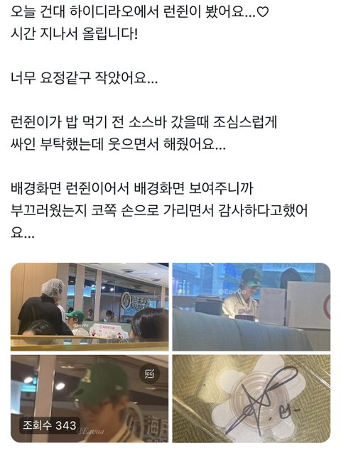 런쥔이 한국오자마자 또 하이디라오 목격담