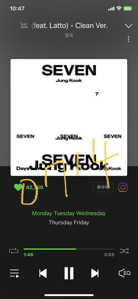 먼데이튜즈데이웬즈데이써스데이프라이데이새터데이썬데이가 머릿 속에서 잊혀지지 않음..ㅎ