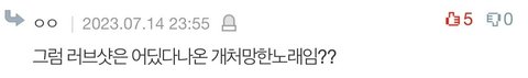 러브샷이 개히트 친 노래도 아닌데 무슨 성역인 것 처럼 말하고 앉았네…ㅋㅋㅋ 엑소가 낸 노래중에는 잘 됐을지는 몰라도 당장 연간 차트만 봐도 처참한데 뭔 자신감이노…ㅠ