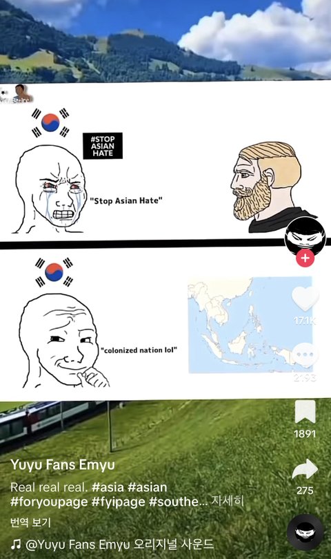 그리고 한국이 동남아 차별이 심한건 맞지만 마치 한국만 유일무이하게 차별하는 것 처럼 한국만을 겨냥하는게 아이러니 함 이건 케이팝 영향도 있을텐데 케이팝 덕질하면서 접한 차별들을 보고 혐한 감정이 생긴 경우가 많다고 함 실제로 Kpop 팬중에 혐한 많음