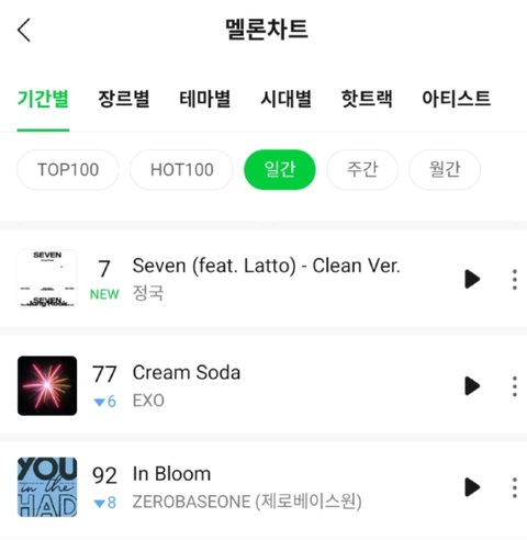 발매한지 24시간도 안된 정국 음원은 벌써 일간 11위