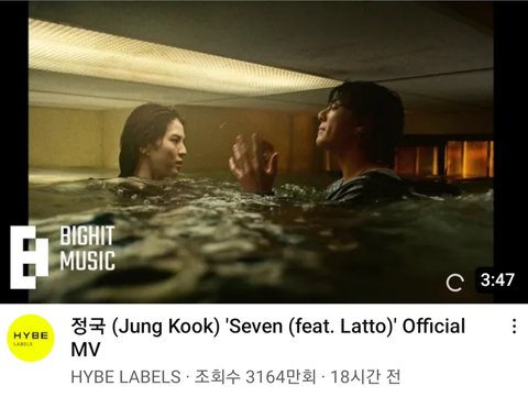 뮤비 뜬지 24시간도 안된 정국 조회수 3100만