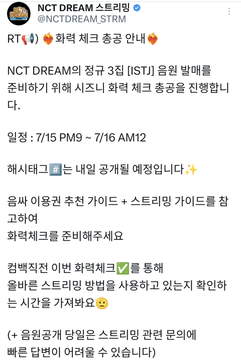 얘들아 오늘 화력체크 총공 잊지마