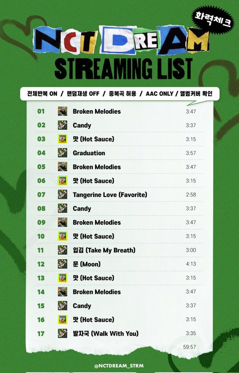 오늘 화력체크 해시태그!! 그리고 스밍 리스트 기존에서 변경됨!!! 이따 잘 확인하고 돌리자~