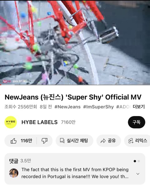 조회수는 뉴진스보다 거의 두밴데 좋아요수는 절반도 안됨 ㅋㅋㅋ 좀 심하지않냐