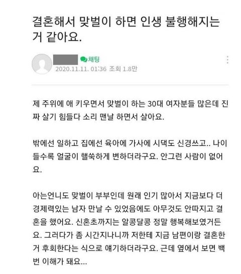 이런 여자한테 요즘 남자들이 매력을 느끼지 않는다는거고. 정떨진다는 거다. 그래서 이런 외벌이 가장들이 바람을 많이 피운다.