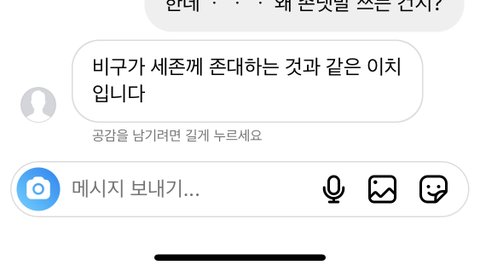 동창 남자애인데 연락와서 몇 마디 주고받았거든? 근디 계속 존댓말하길래 왜 존댓말 하는 거냐고 물었더니 저럼