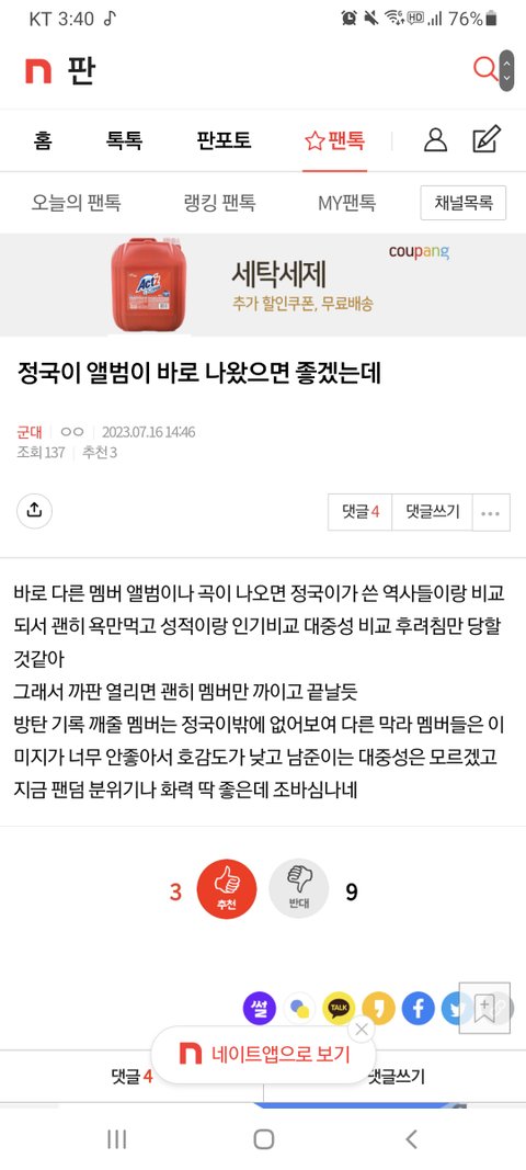 ❗댓글답글도 여기서 봐❗정국이 앨범이 바로 나왔으면 좋겠는데